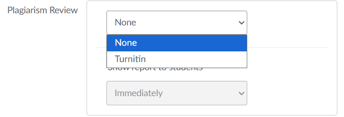 - In the dropdown box under Plagiarism Review, select Turnitin.